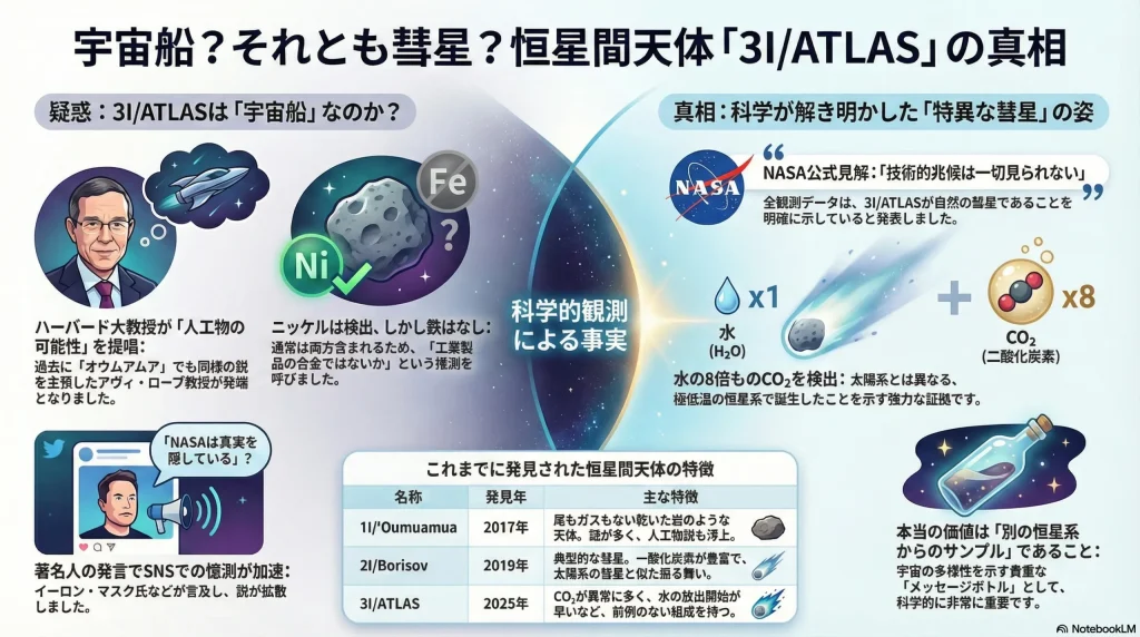 この章では、「3I/ATLASは宇宙船ではないか?」という説がなぜ広まったのか、その発端となった仮説と根拠について詳しく解説します。